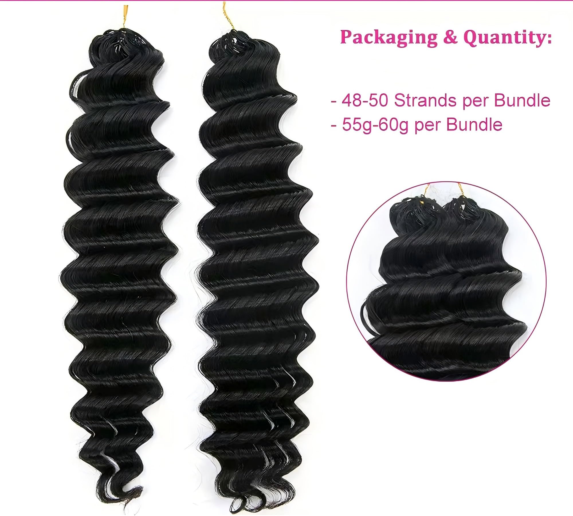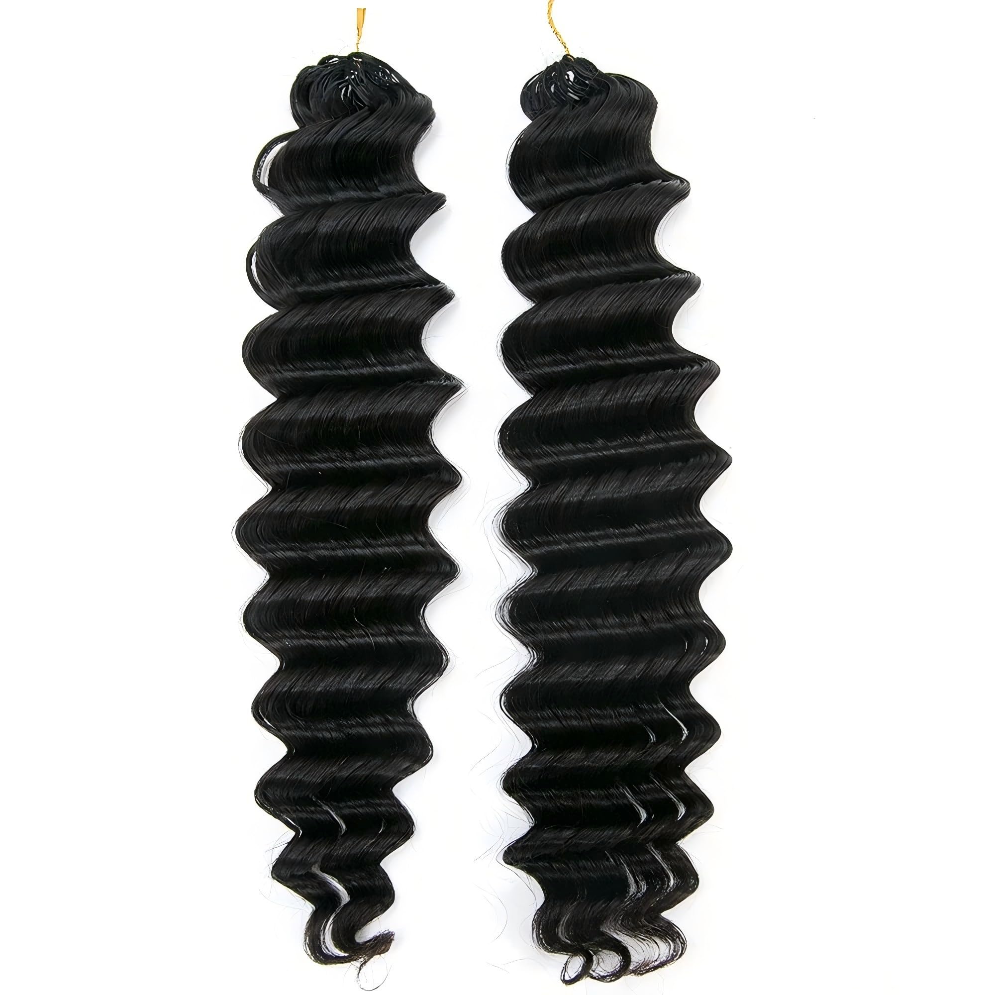 Deep Wave Knotless Pre-Separated Crochet Hair Extensions Feather Hair Extensions Deep Curly Feather Line Hair Extension 100% Human Hair Natural Color 18 Inch 100g