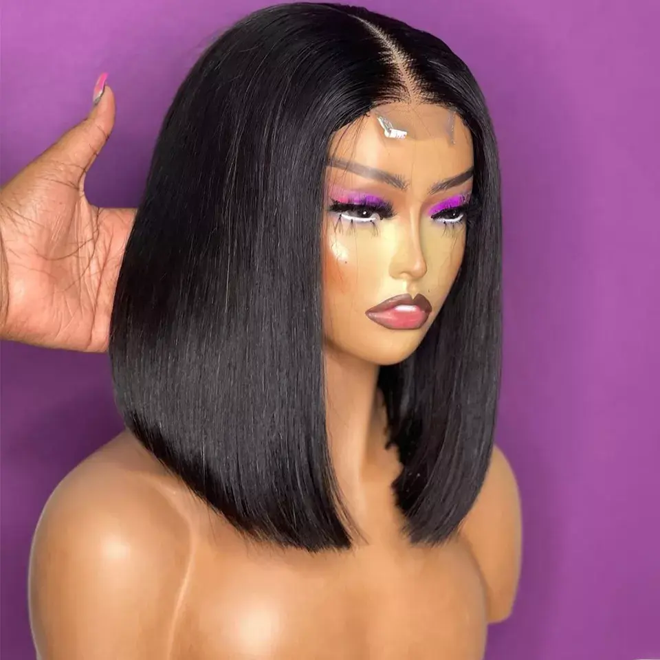 12A Top Grade Super Doube Drawn Straight Bob Wigs Human Hair Wigs 13x4 Lace Front Wigs for Black Women Bex Hair 150% Density Pre Plucked with Baby Hair Natural Color Bob Wigs 10~14 Inch