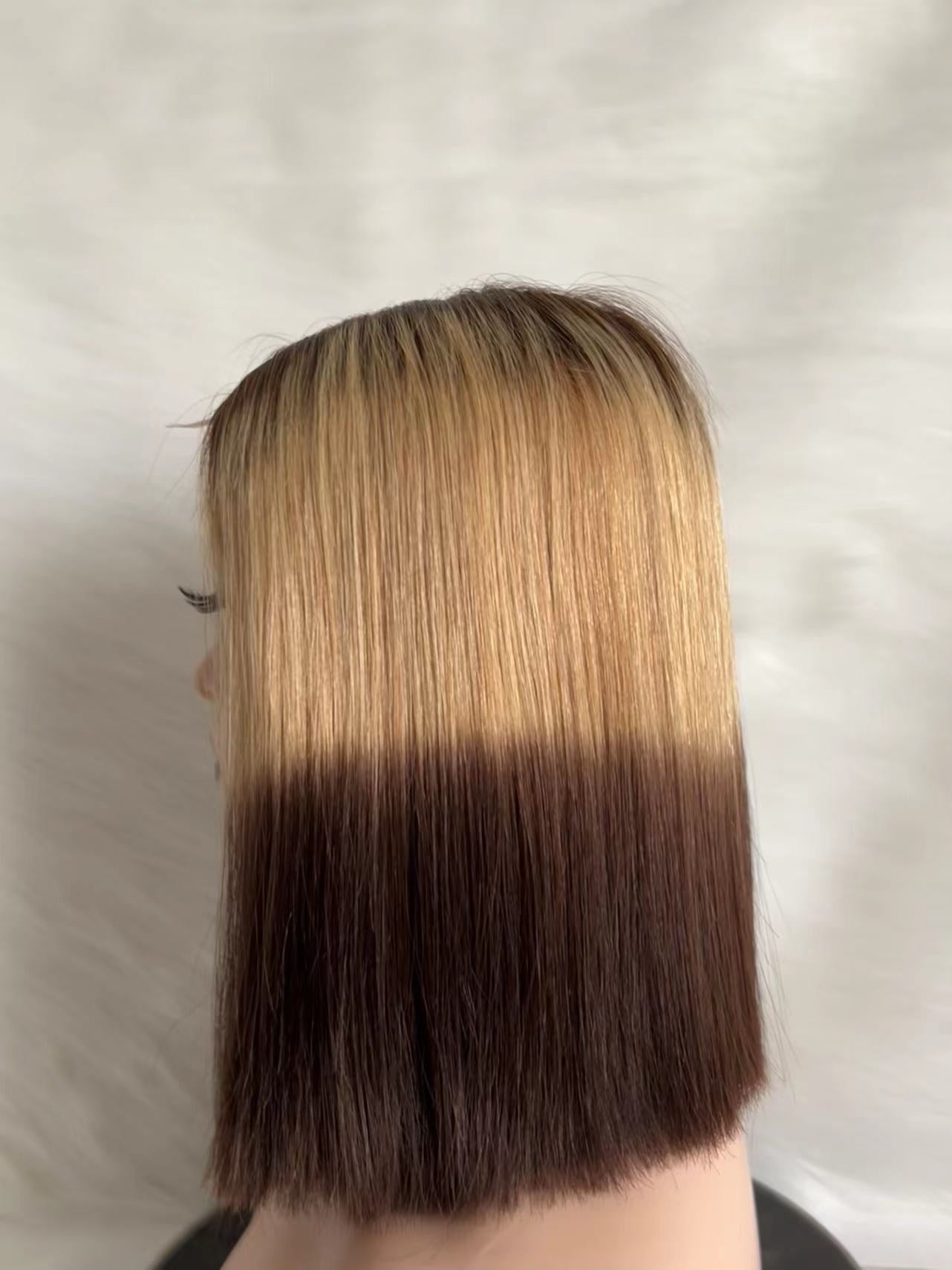 Human Hair Short Bob Wig With Bangs Black and Blonde bob wig with fringe