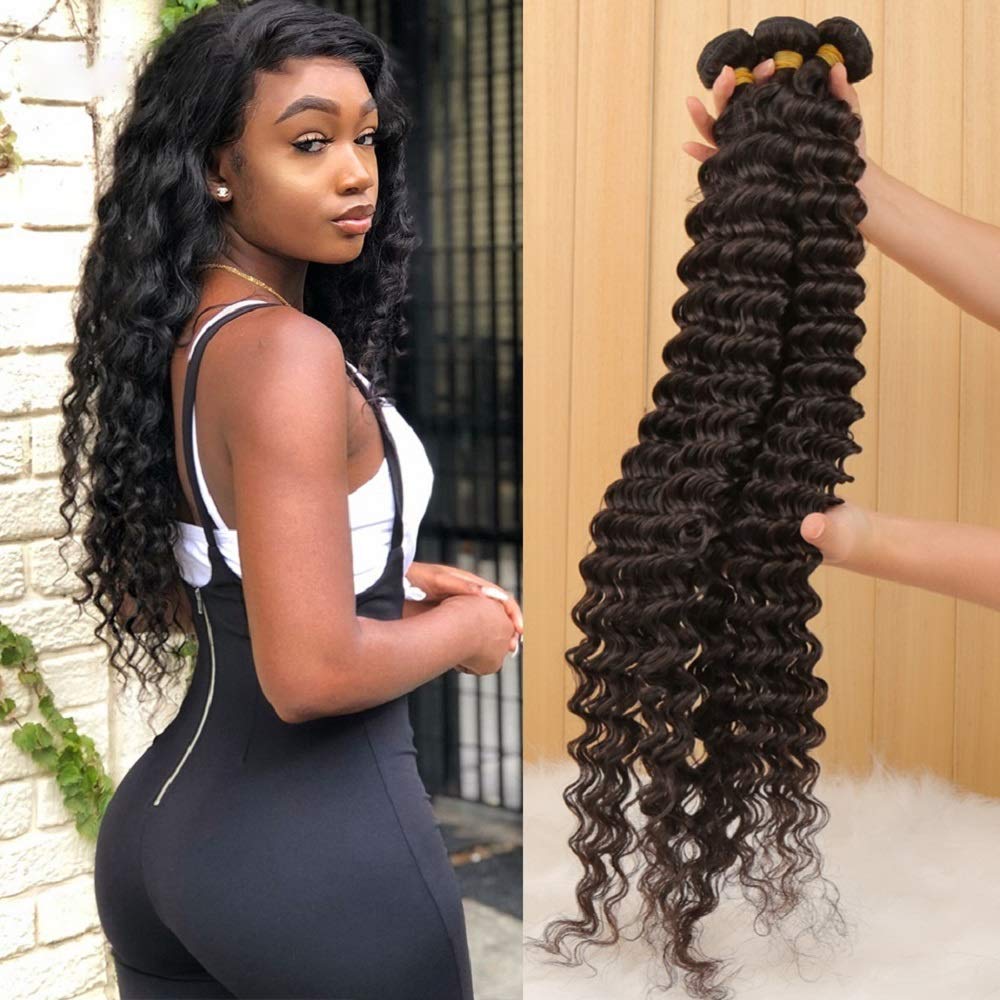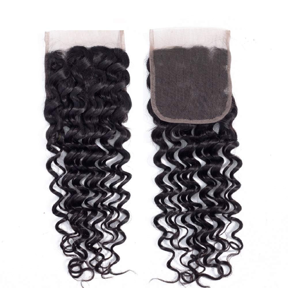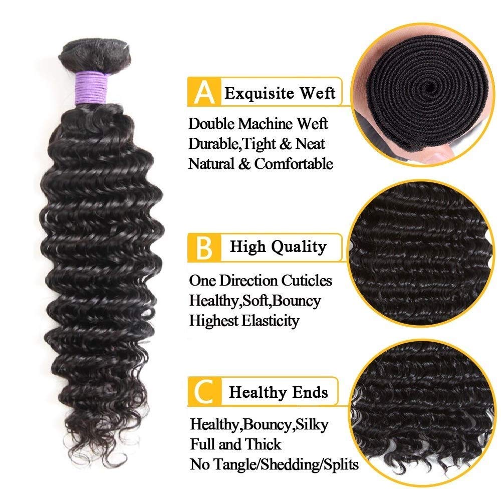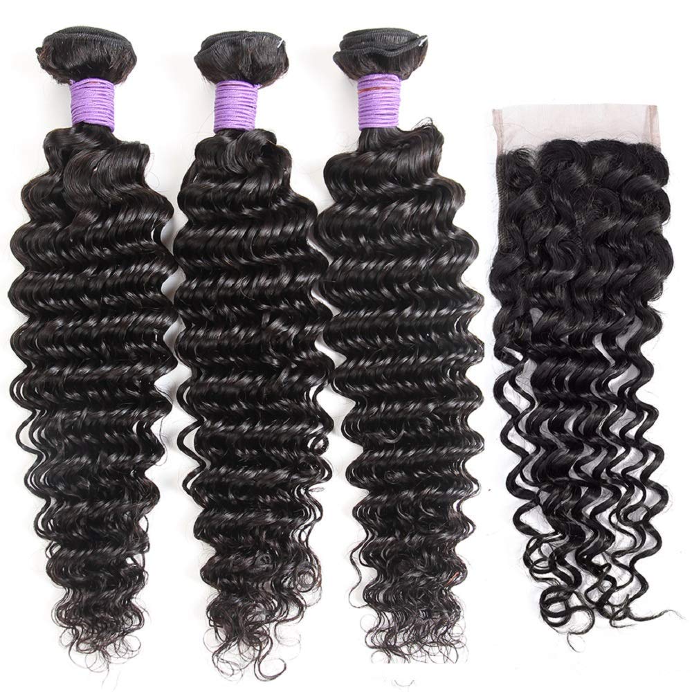 Brazilian Deep Wave Bundles with Closure 10A Virgin Human Hair Bundles with Closure Wet and Wavy Curly Hair Weave 3 Bundles with Lace Closure Free Part