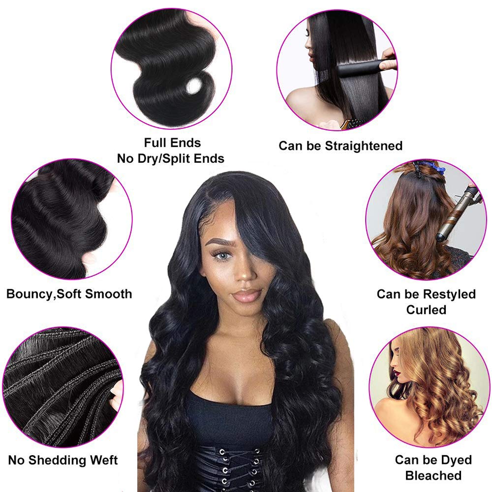 Kbeth Hair Brazilian Human Hair Body Wave 3 Bundles with Closure Unprocessed Brazilian Body Wave Human Hair Double Weft with Lace Closure 4×4 Free Part